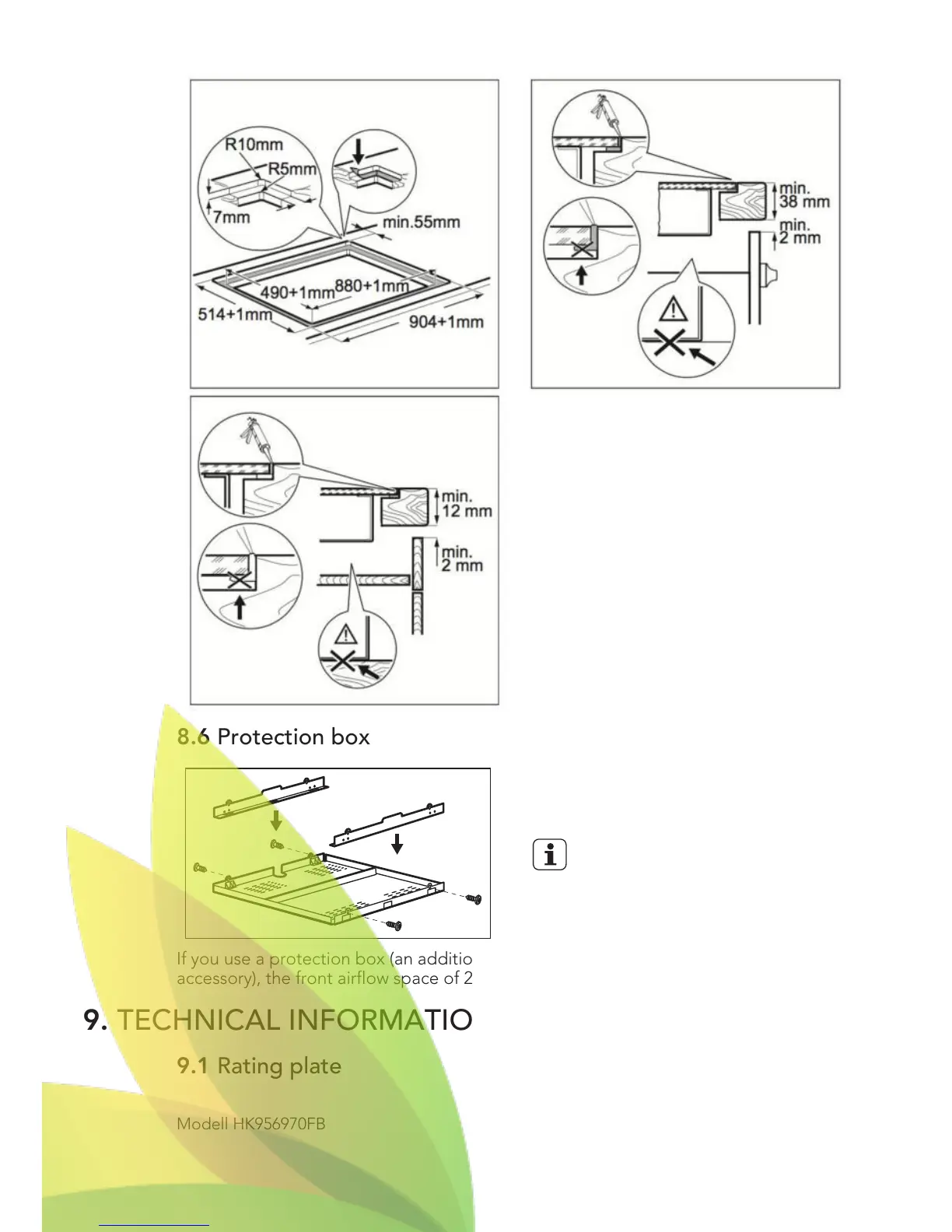 below the hob are not necessary. The