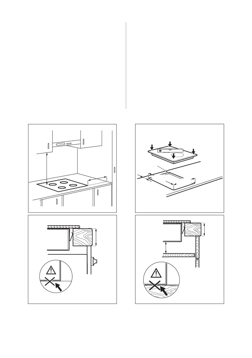 spodnji rob kuhalne plošče vzdolž