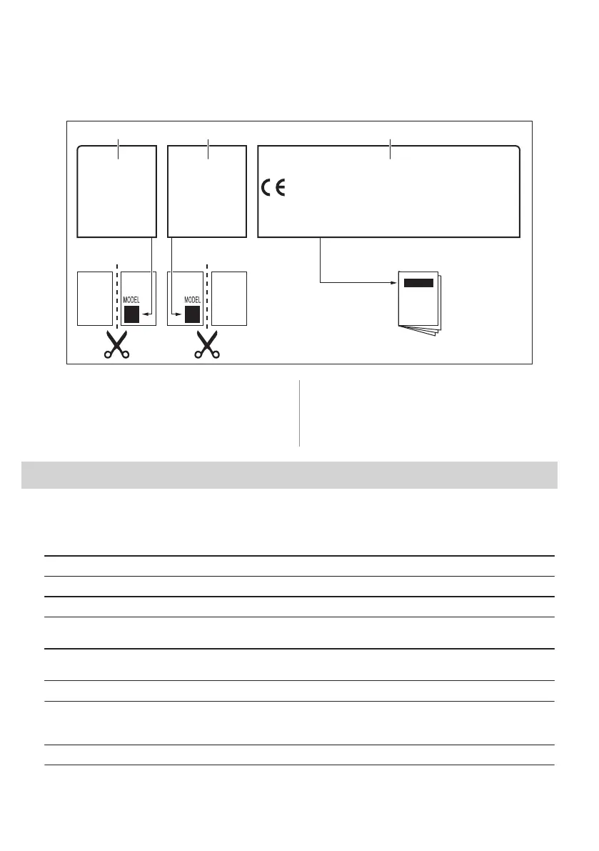 Stick the adhesive labels as indicated below: