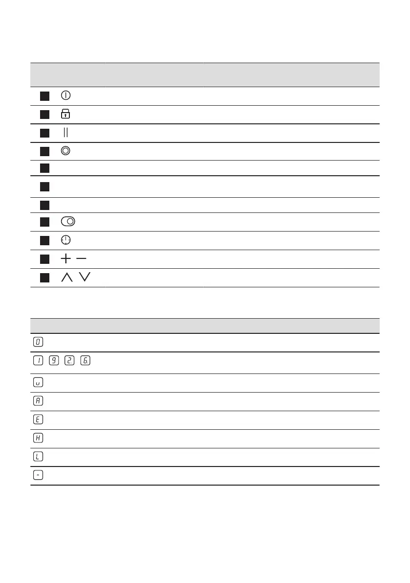 On / Off To activate and deactivate the hob.