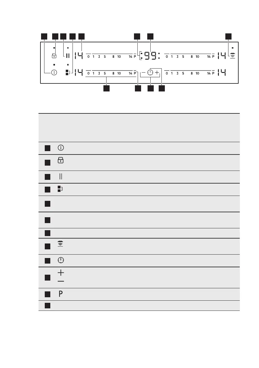 MARCHE/ARRÊT Pour allumer et éteindre la table de cuisson.