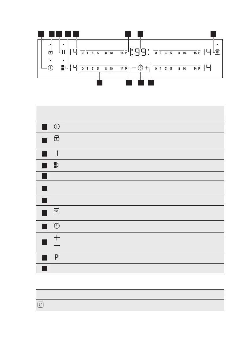 - Kochstufenanzeige Zeigt die Kochstufe an.