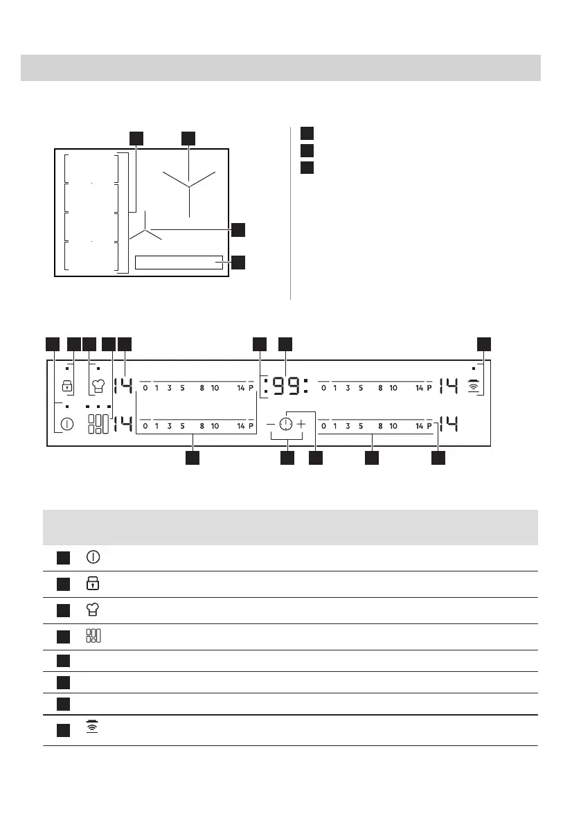 - Timer indicators of cooking zones To show for which zone you set the time.