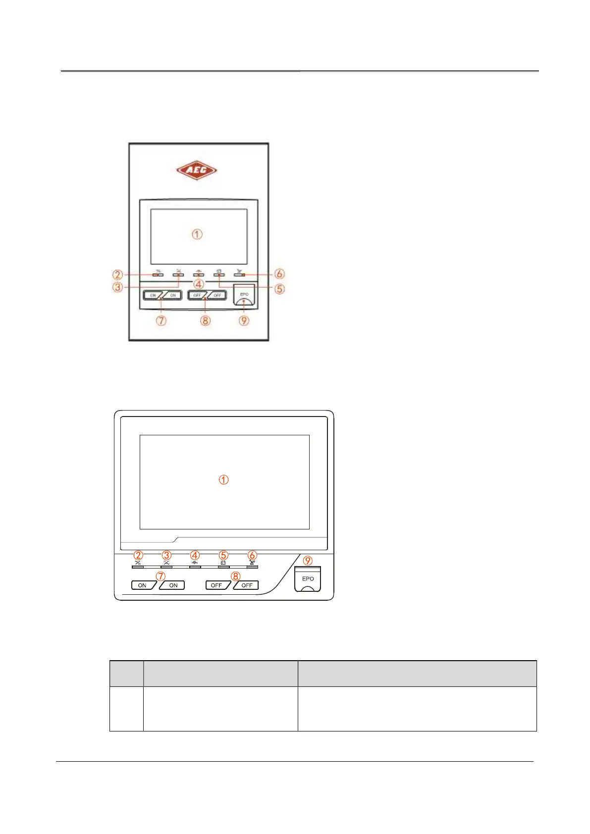 Table2-1 Illustration for the operation panel