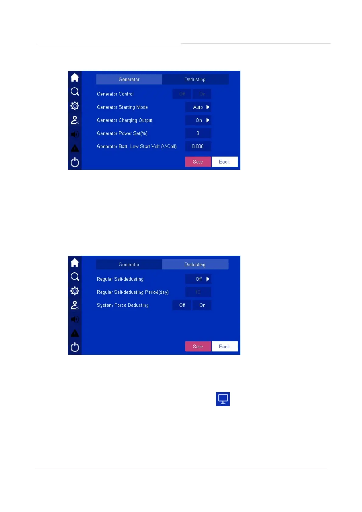 setting to start force dedusting. Once the output exceed 60% of rated output, it will not do the