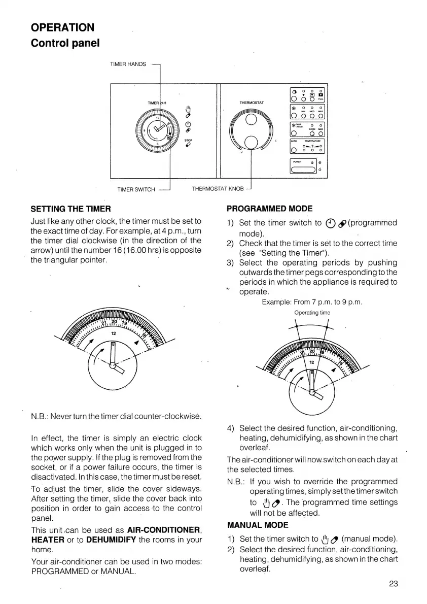 AEG K 19 E - Operation; Setting the Timer; Programmed Mode; Manual Mode