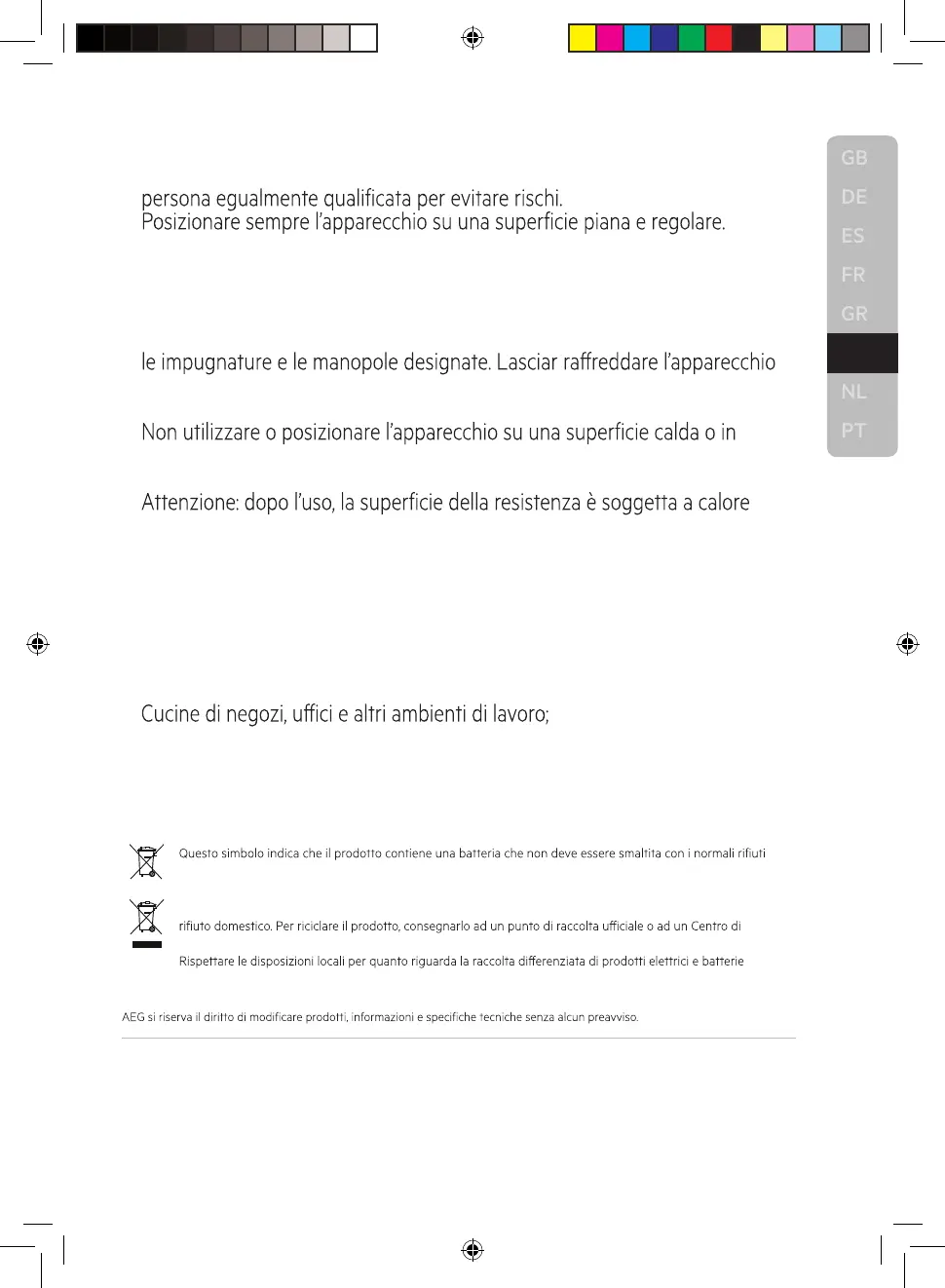 Assistenza AEG in grado di rimuovere e riciclare la batteria e le parti elettriche in modo sicuro e professionale.