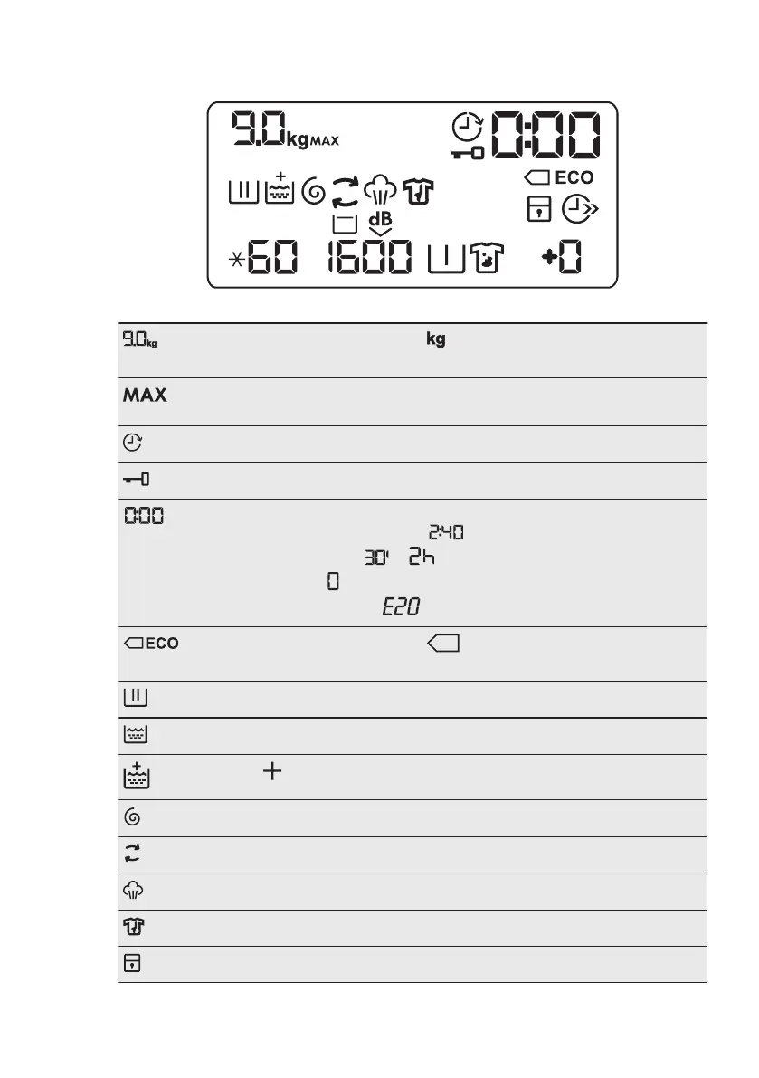 Maximum laundry indicator. It flashes when the laundry load exceeds the