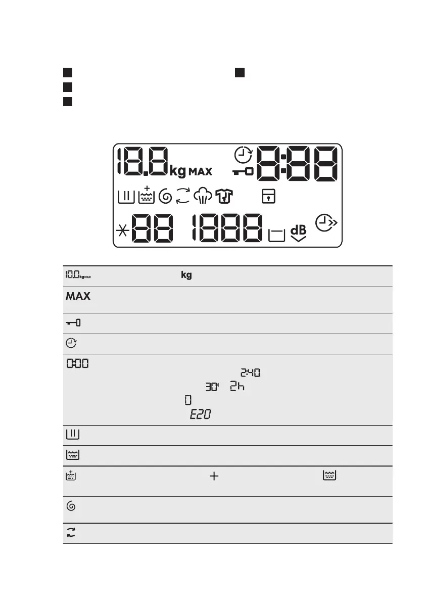 Maximum laundry indicator. It flashes when the laundry load exceeds
