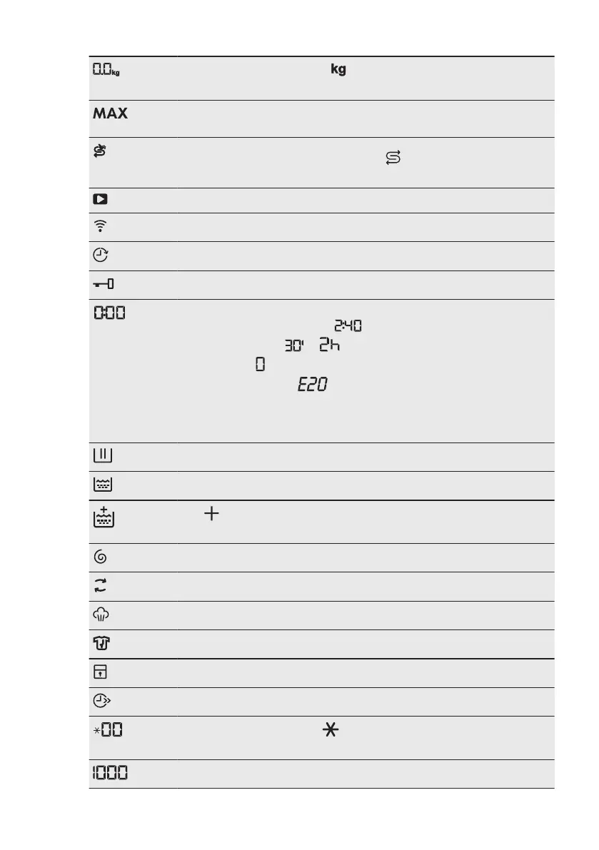 Maximum load indicator. The icon flashes during laundry load esti‐