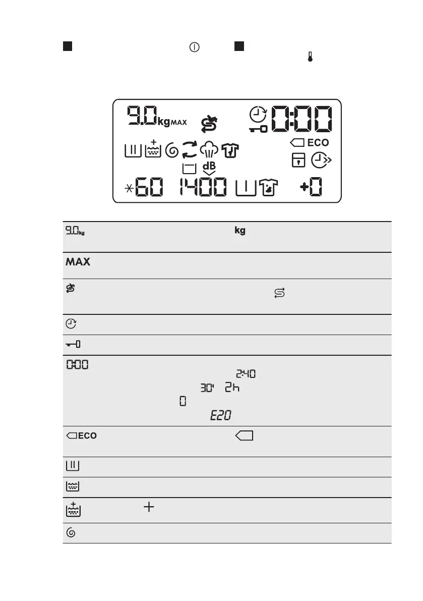 Maximum load indicator. The icon flashes during laundry load esti-