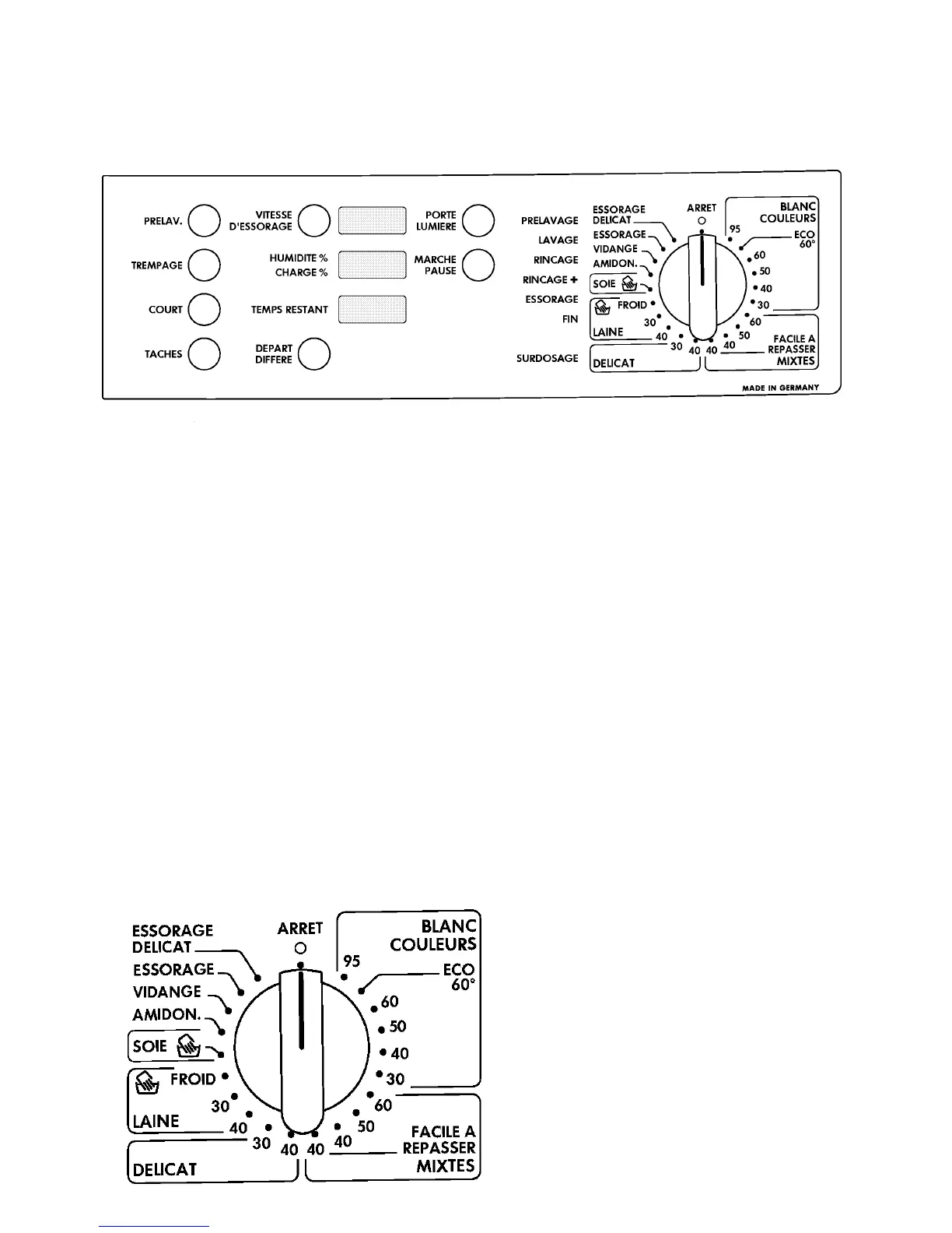 Chaque programme de lavage et sa température peuvent être réglés au moyen du sélecteur