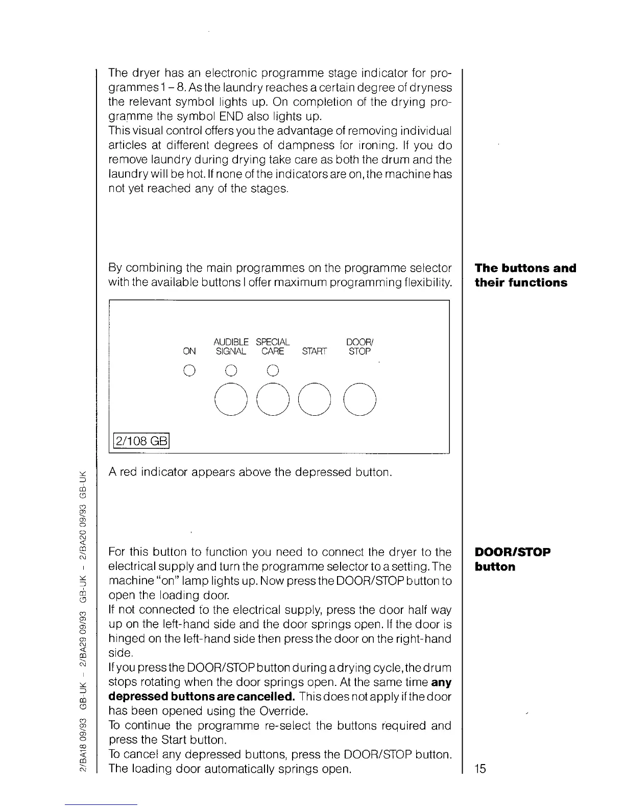 AEG Lavatherm 3400 microcomputer - Control Button Functions