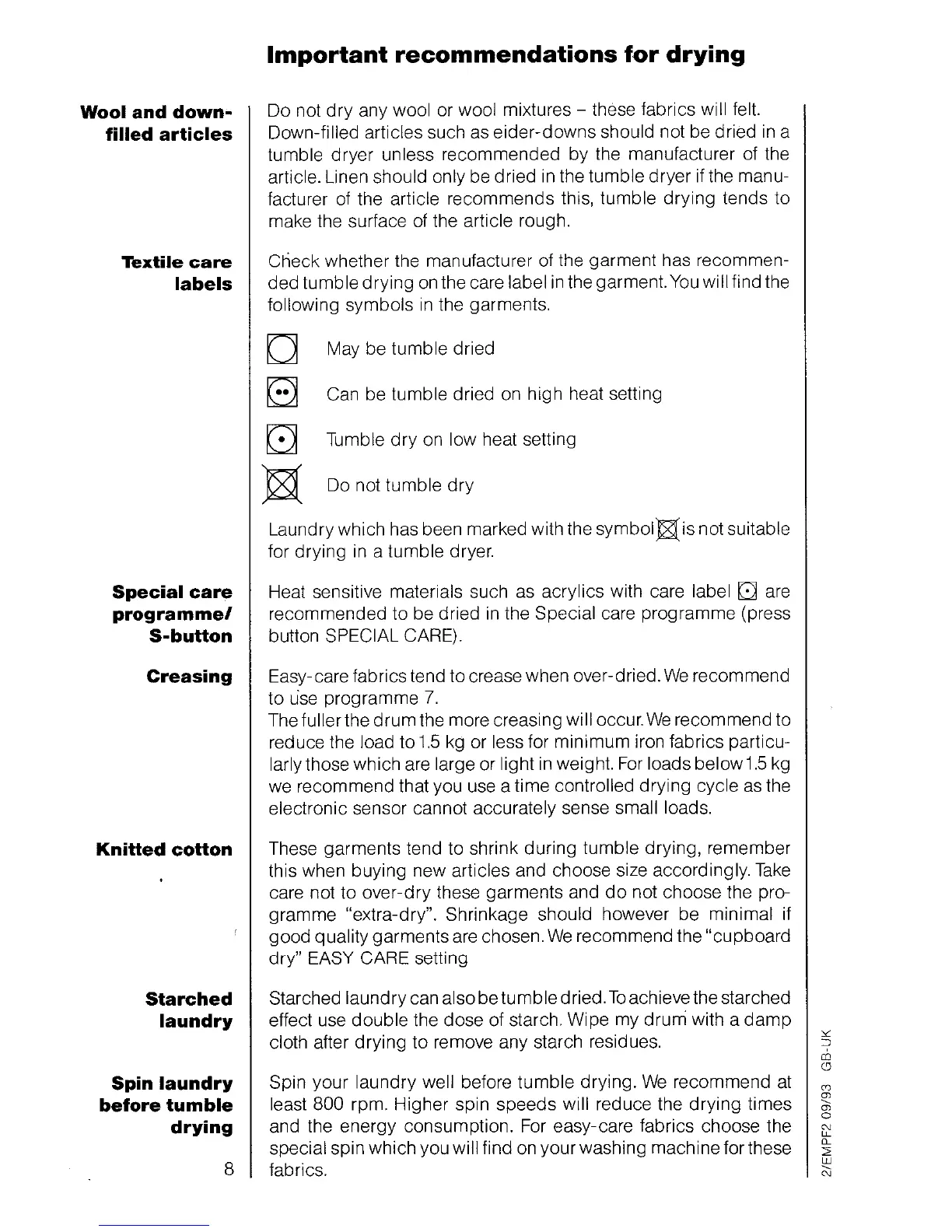 AEG Lavatherm 3400 microcomputer - Drying Recommendations; Fabric Care and Preparation