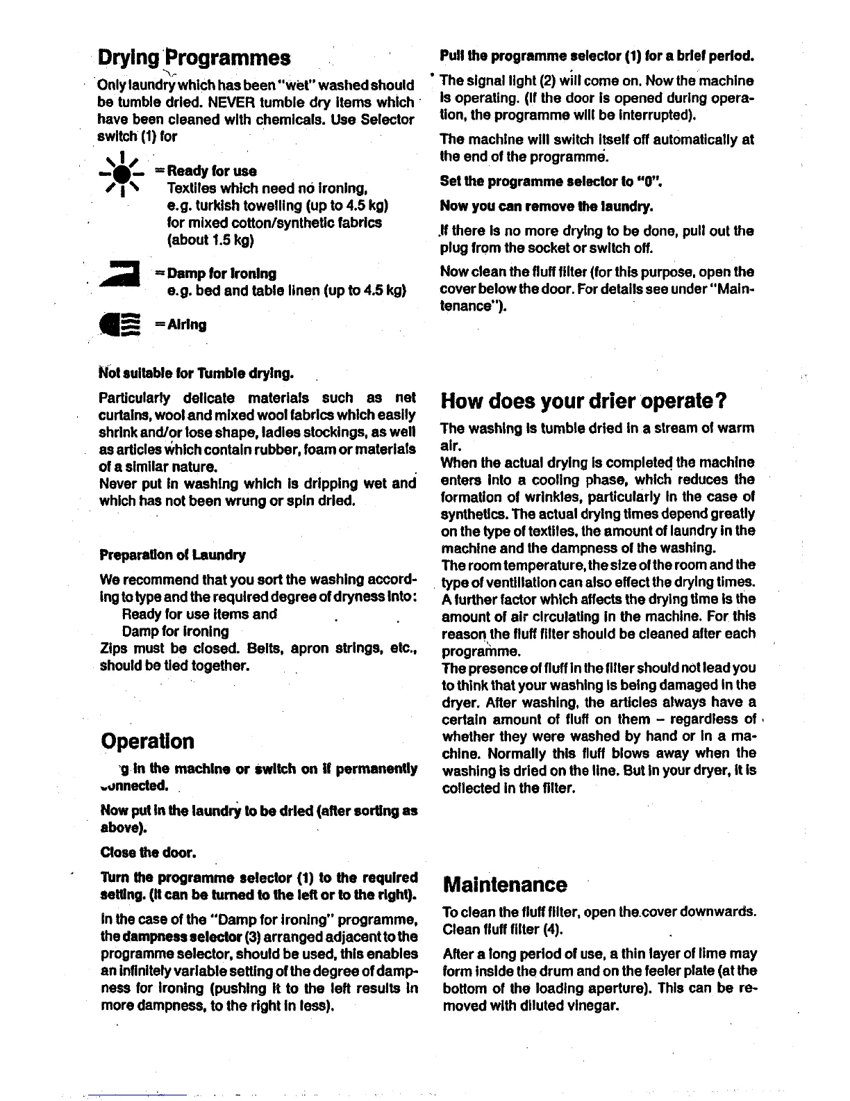 AEG Lavatherm Electronic - Drying Programmes and Operation; Programme Selection; Preparing for Operation; Starting and Running the Dryer