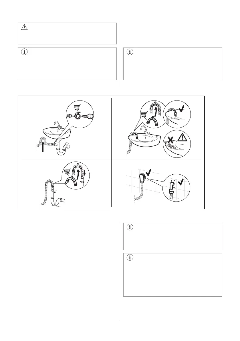 It is possible to connect the drain hose in different ways: