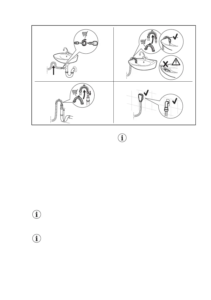 It is possible to connect the drain hose in different ways: