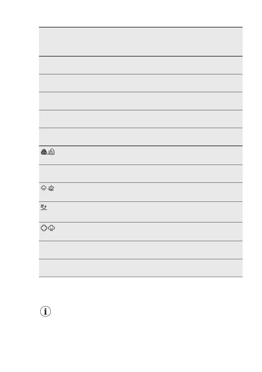 Programme temperature, maximum spin speed and maximum load