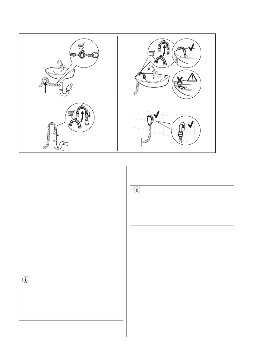 It is possible to connect the drain hose in different ways: