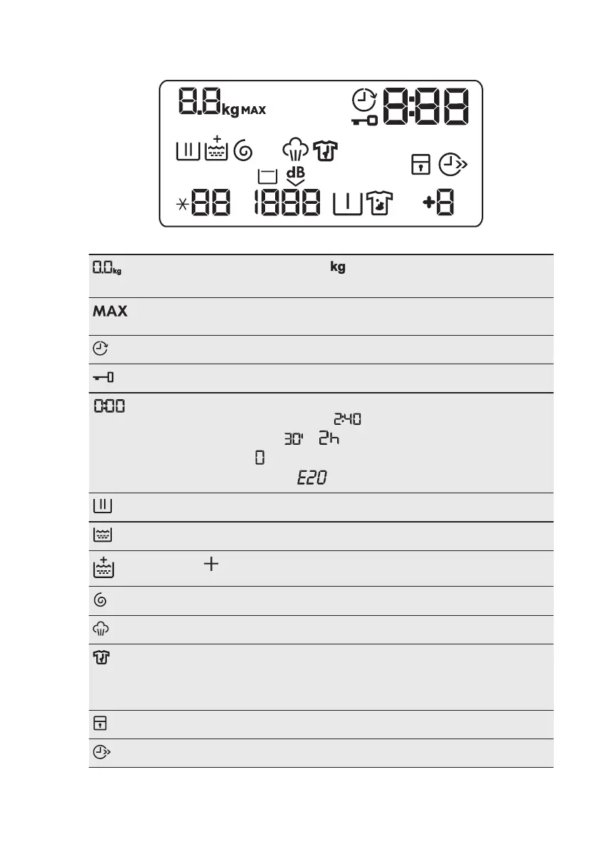 Maximum load indicator. The icon flashes during laundry load estima‐