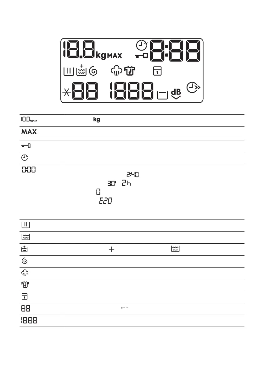 Maximum laundry indicator. It flashes when the laundry load exceeds the maximum de‐