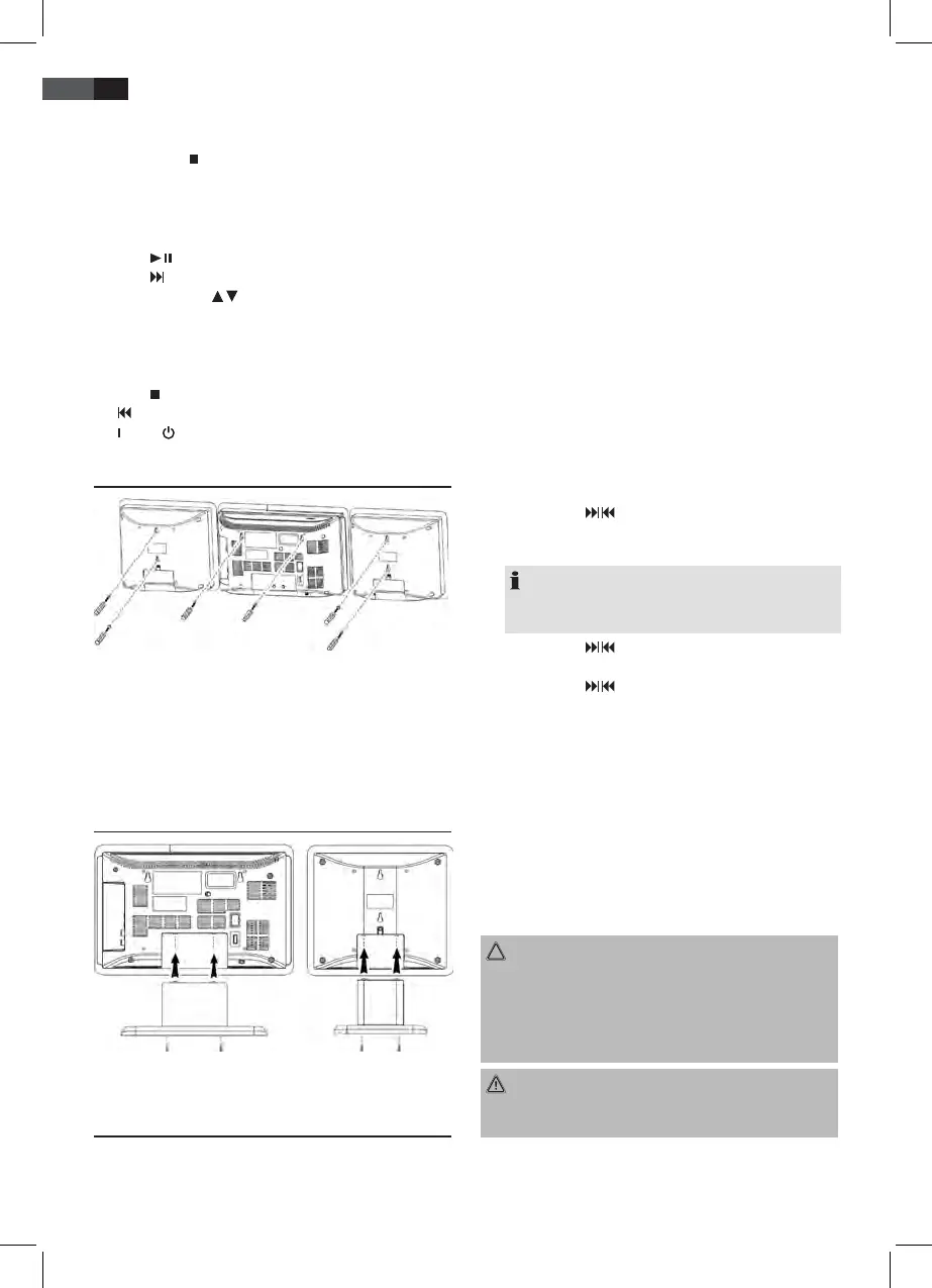 • Acople la unidad y los altavoces a los soportes incluidos y