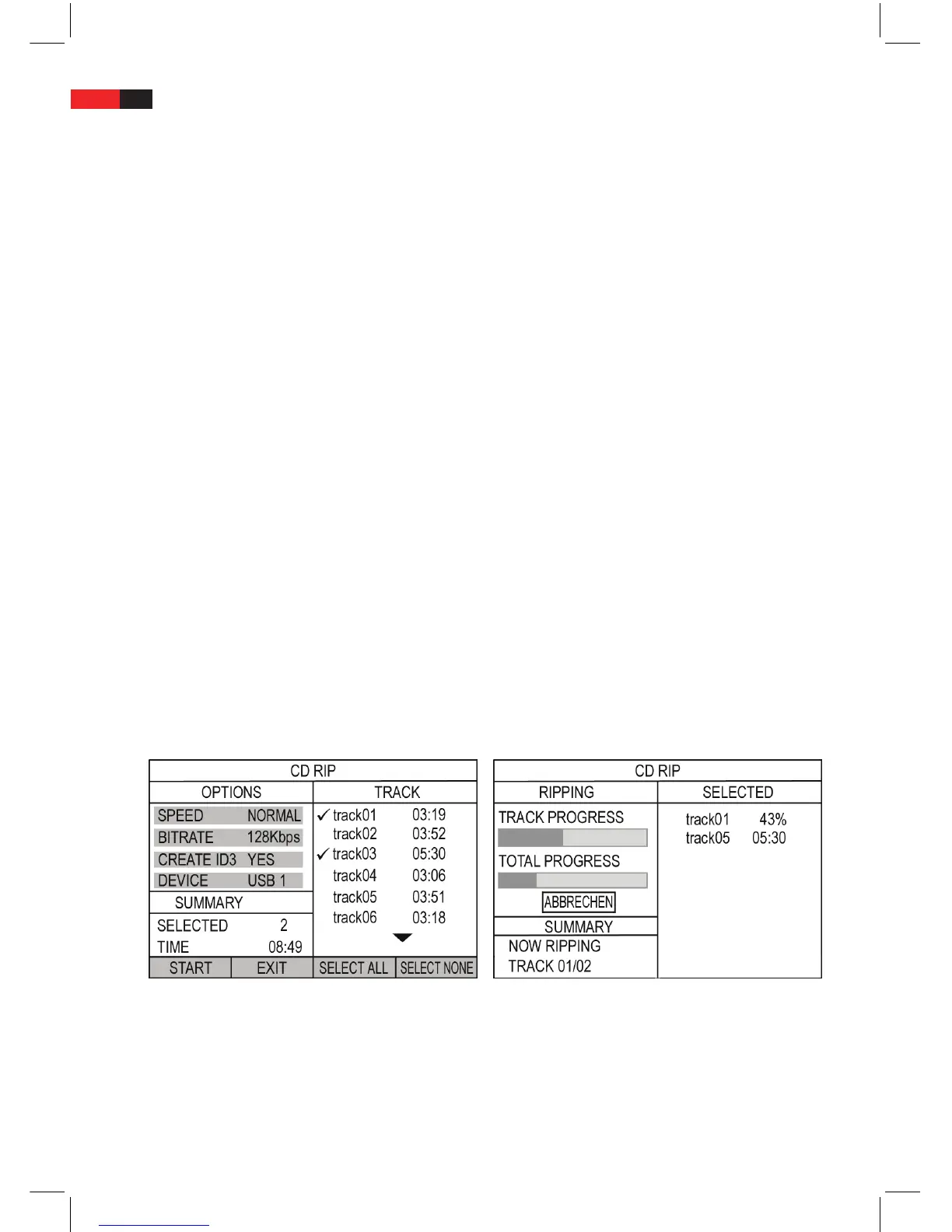 CD Ripping Menü CD Ripping Fortschritt