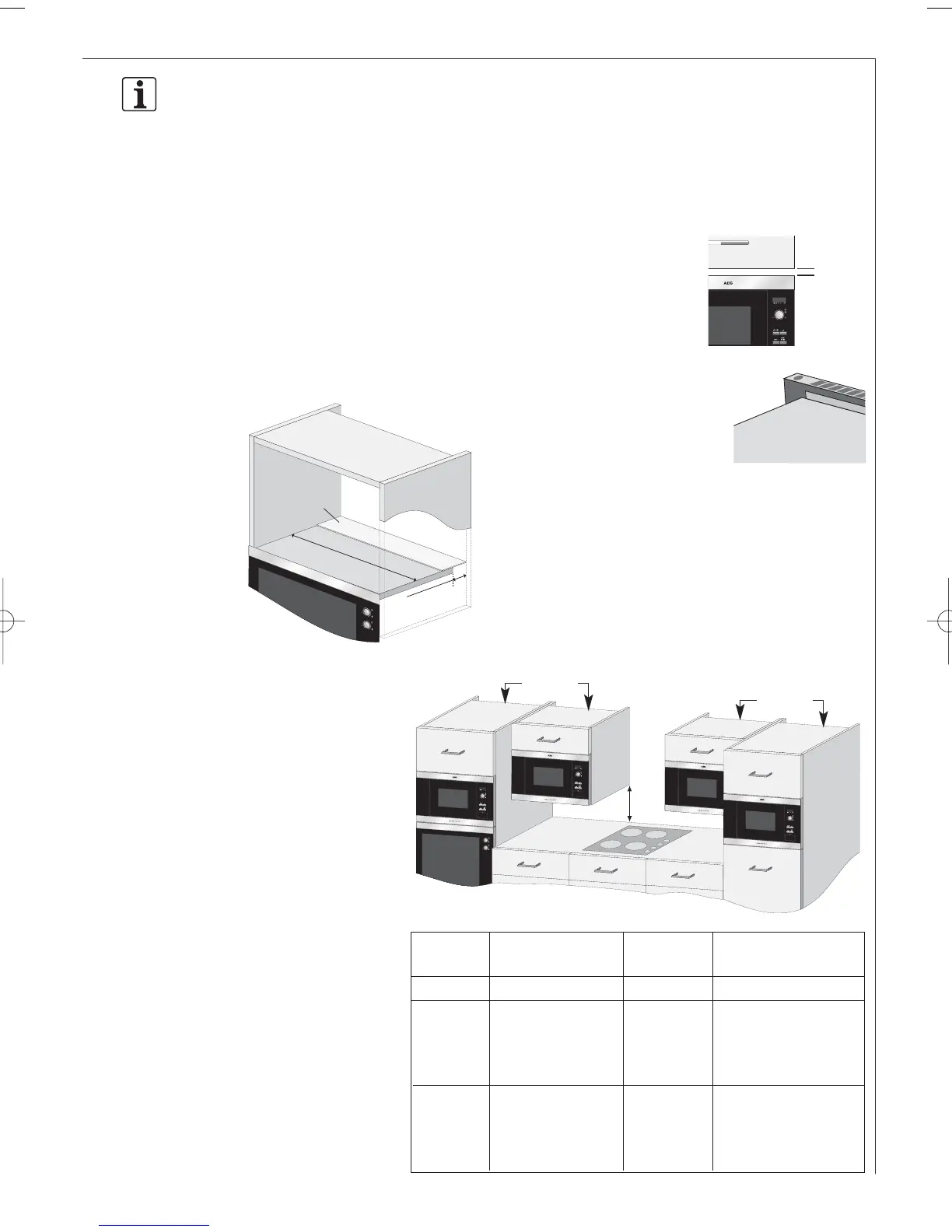 • The cupboard must be a minimum of