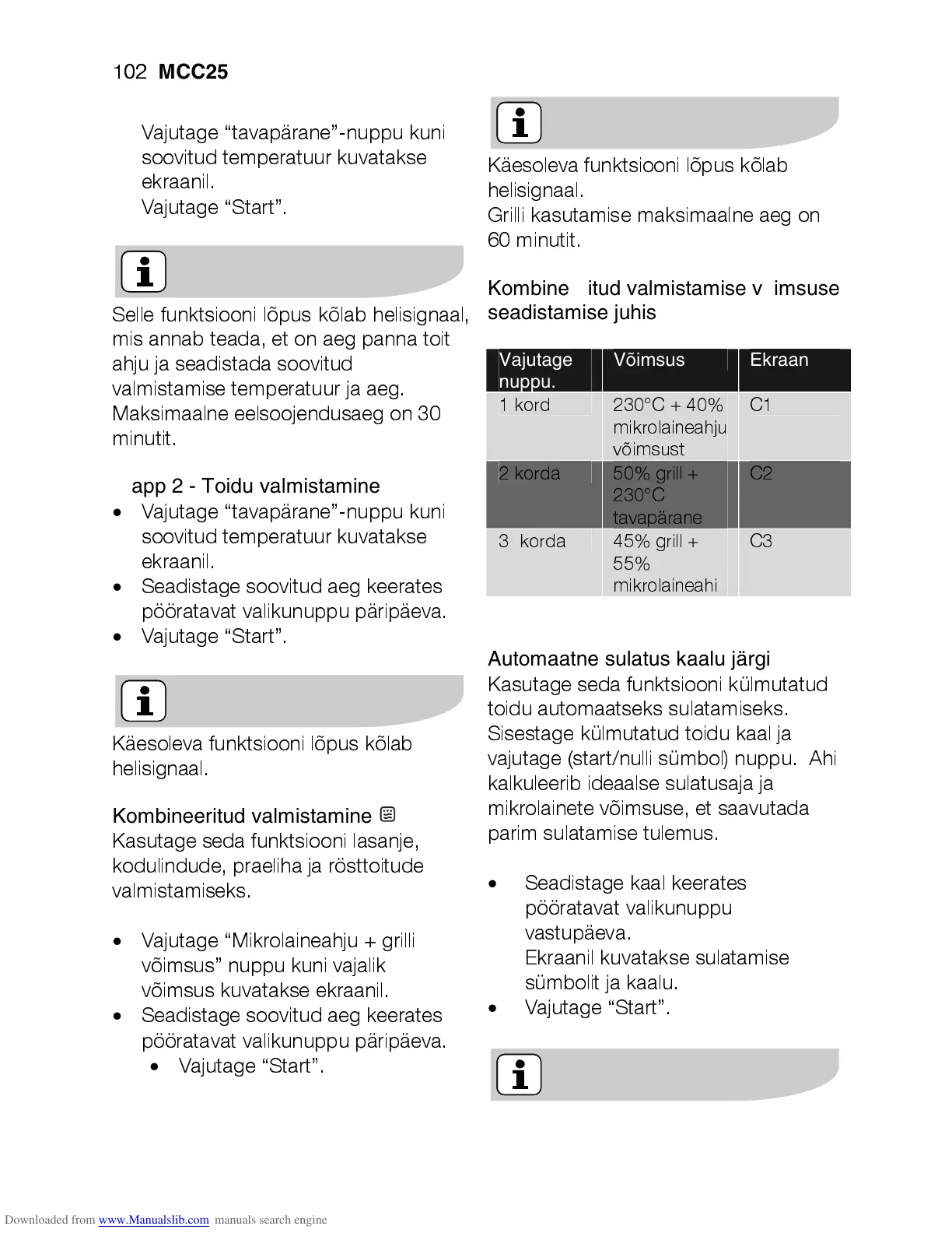 vajutage (start/nulli sümbol) nuppu. Ahi