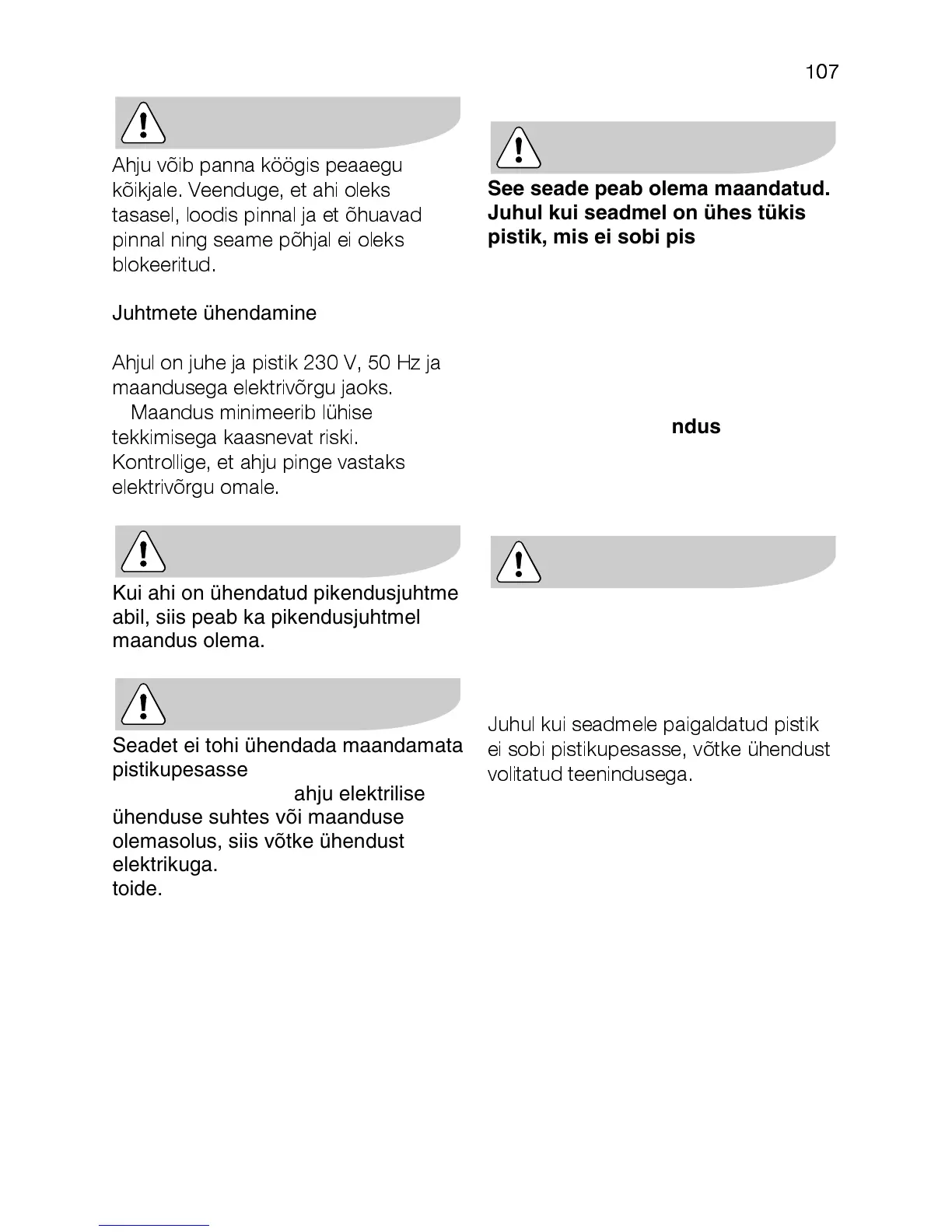 Seadet ei tohi ühendada maandamata