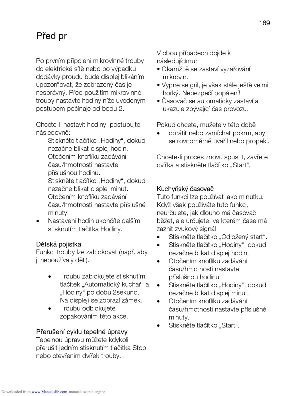 přerušit jedním stisknutím tlačítka Stop