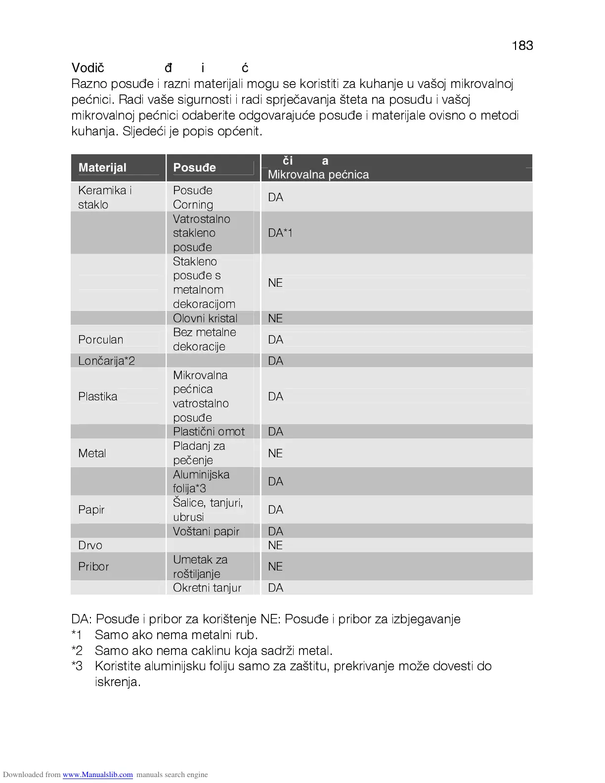 Razno posuđe i razni materijali mogu se koristiti za kuhanje u vašoj mikrovalnoj