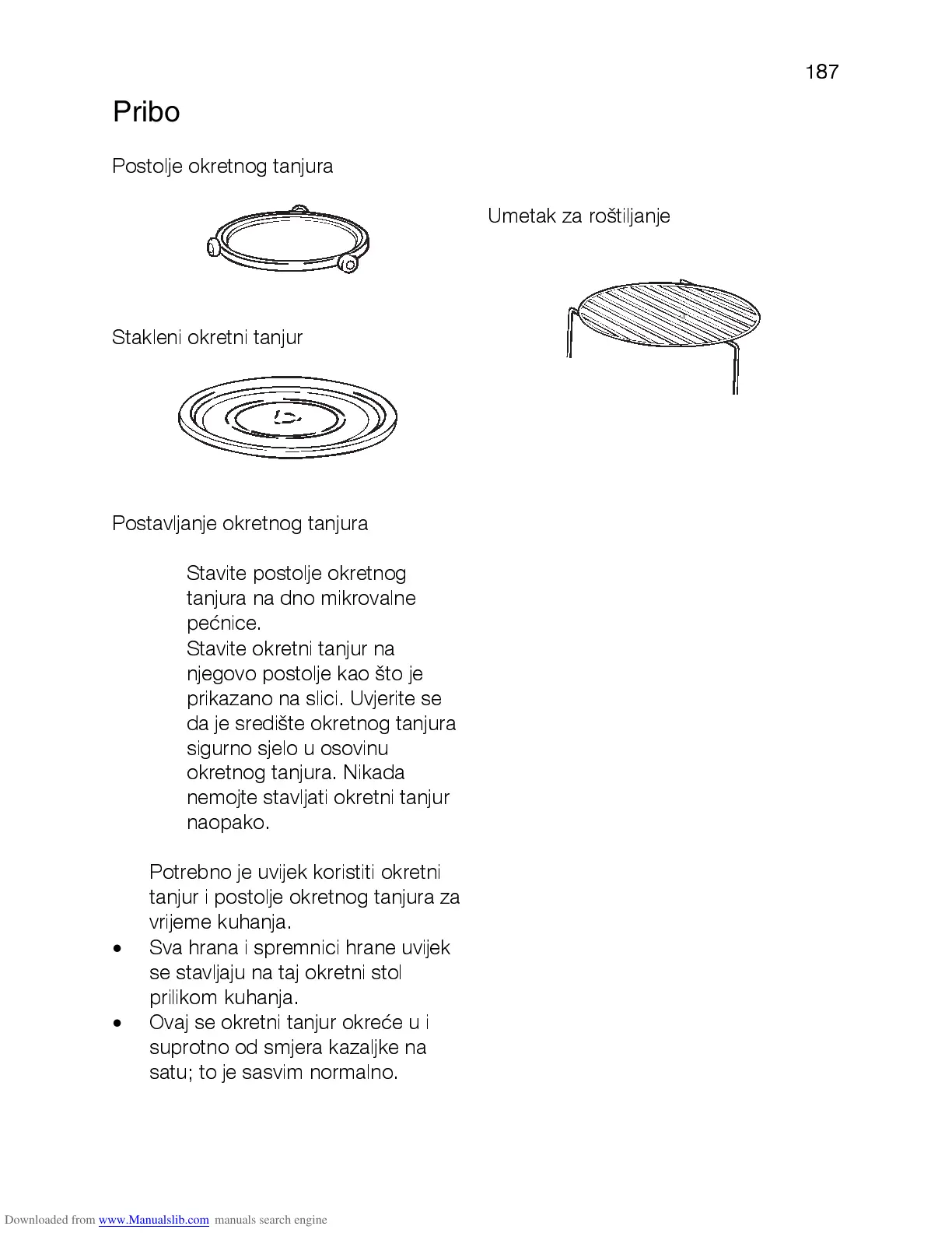 nemojte stavljati okretni tanjur