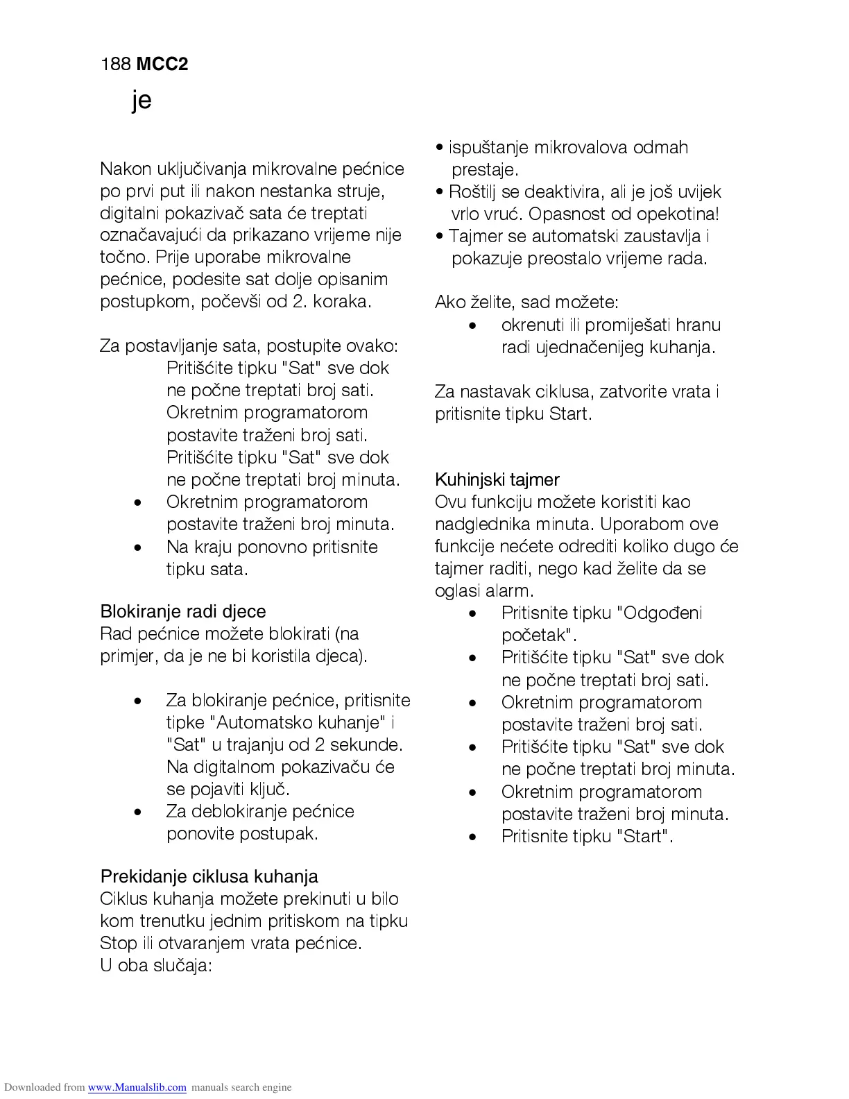 • Tajmer se automatski zaustavlja i