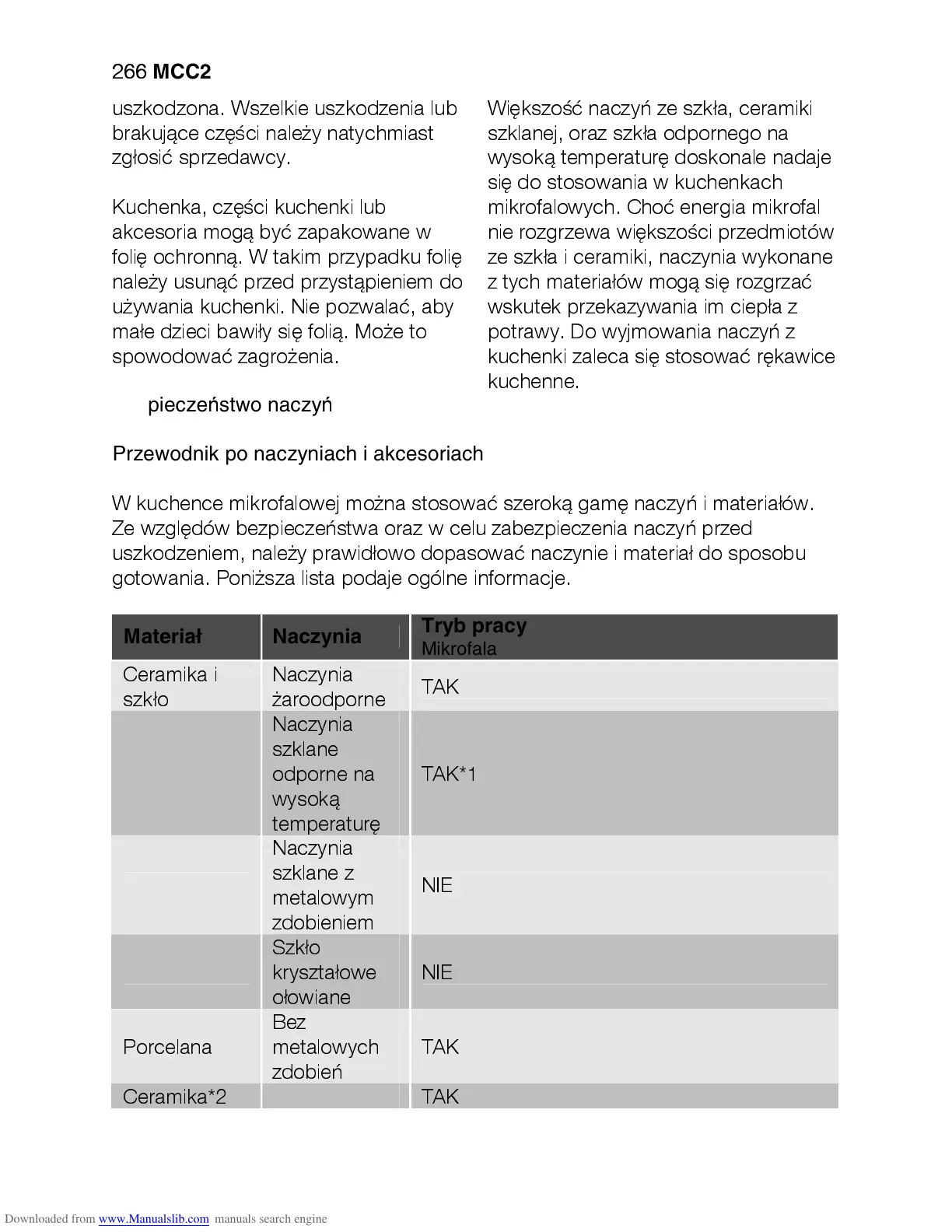 W kuchence mikrofalowej można stosować szeroką gamę naczyń i materiałów.