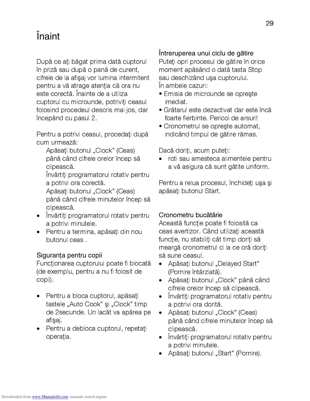 Pentru a debloca cuptorul, repetaţi
