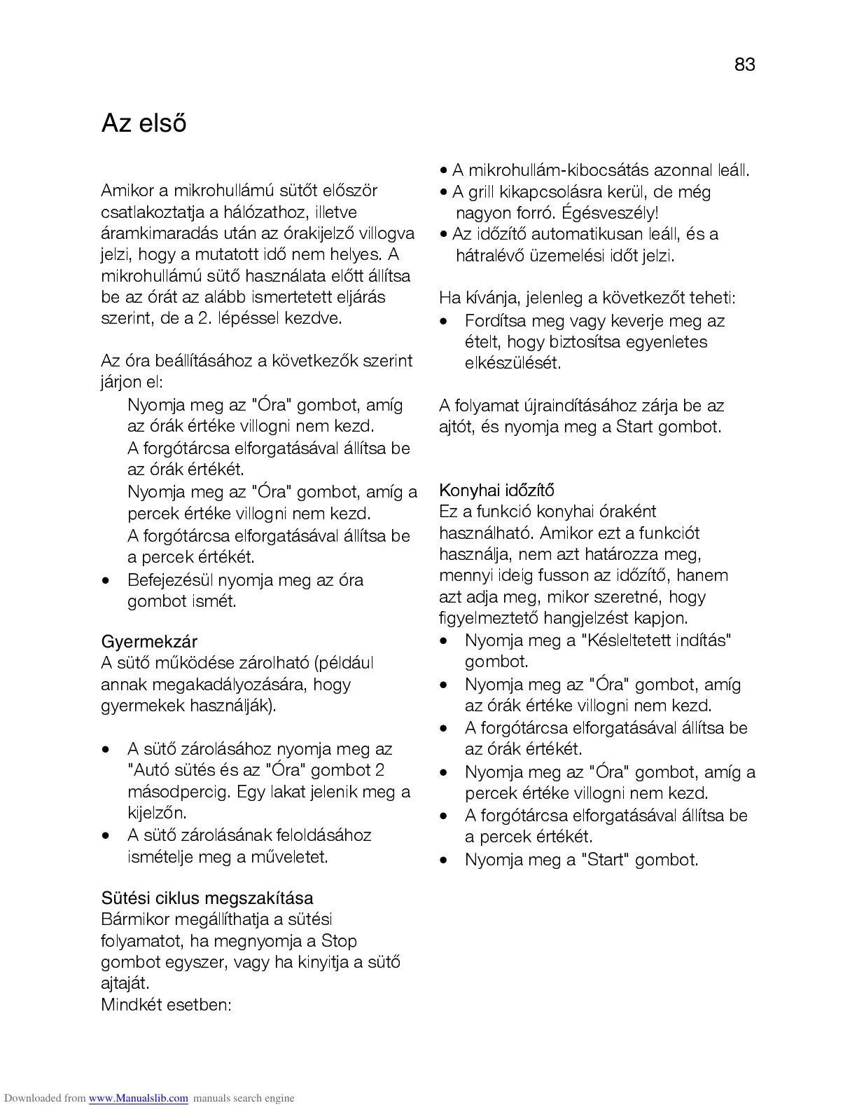 • A mikrohullám-kibocsátás azonnal leáll.