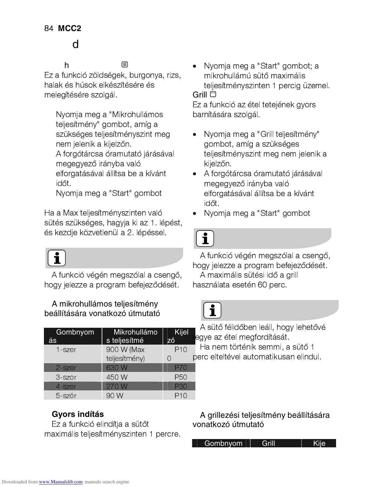 Nyomja meg a "Grill teljesítmény"