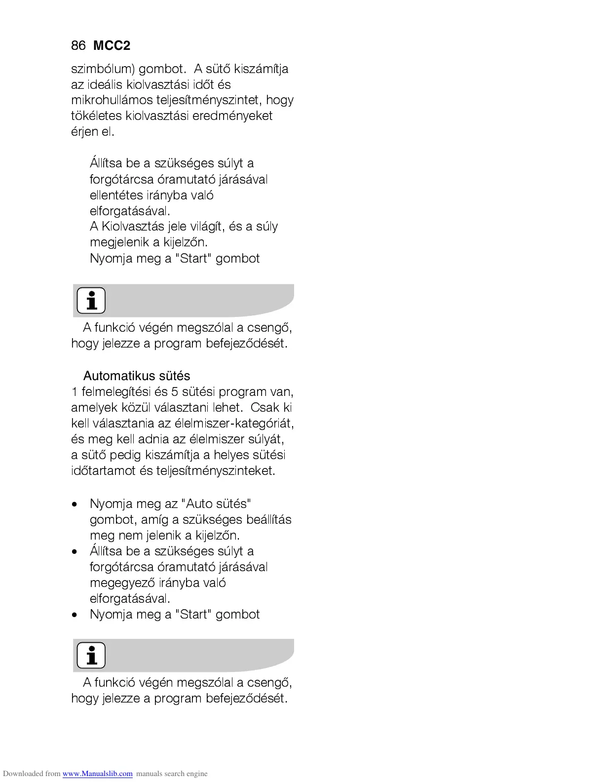 szimbólum) gombot. A sütő kiszámítja