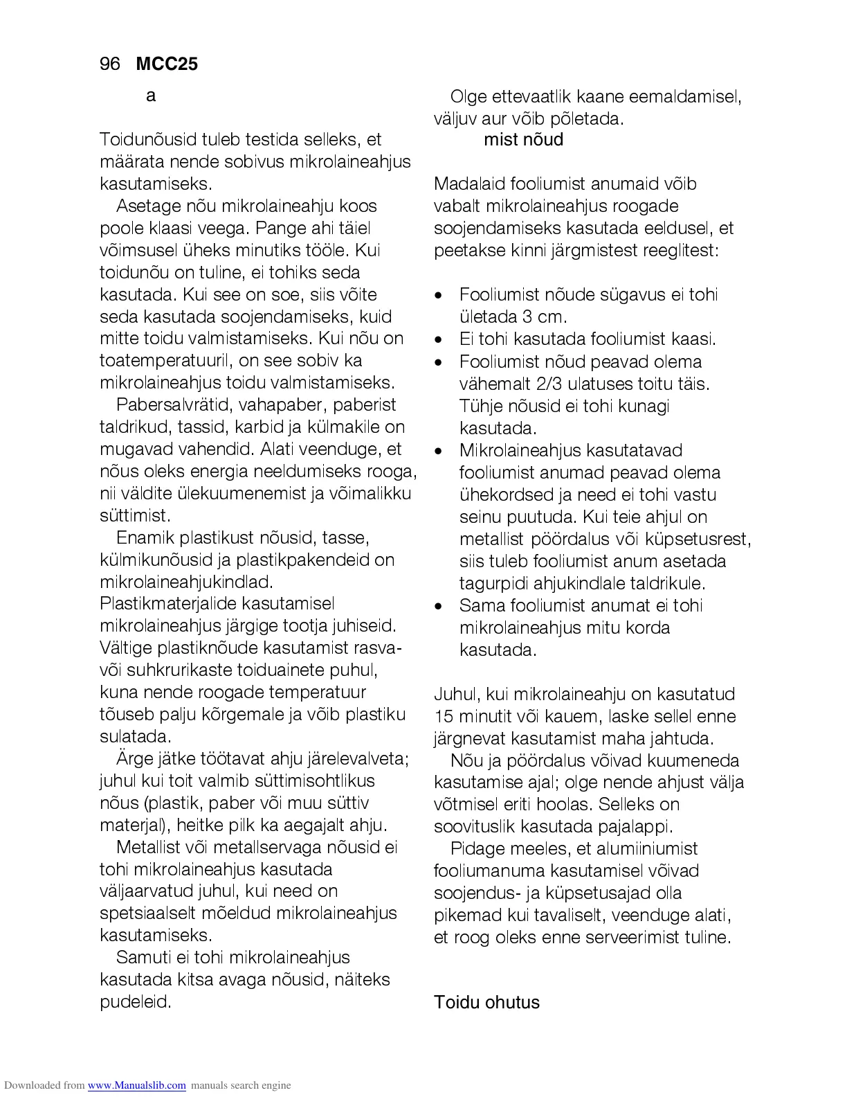 mitte toidu valmistamiseks. Kui nõu on