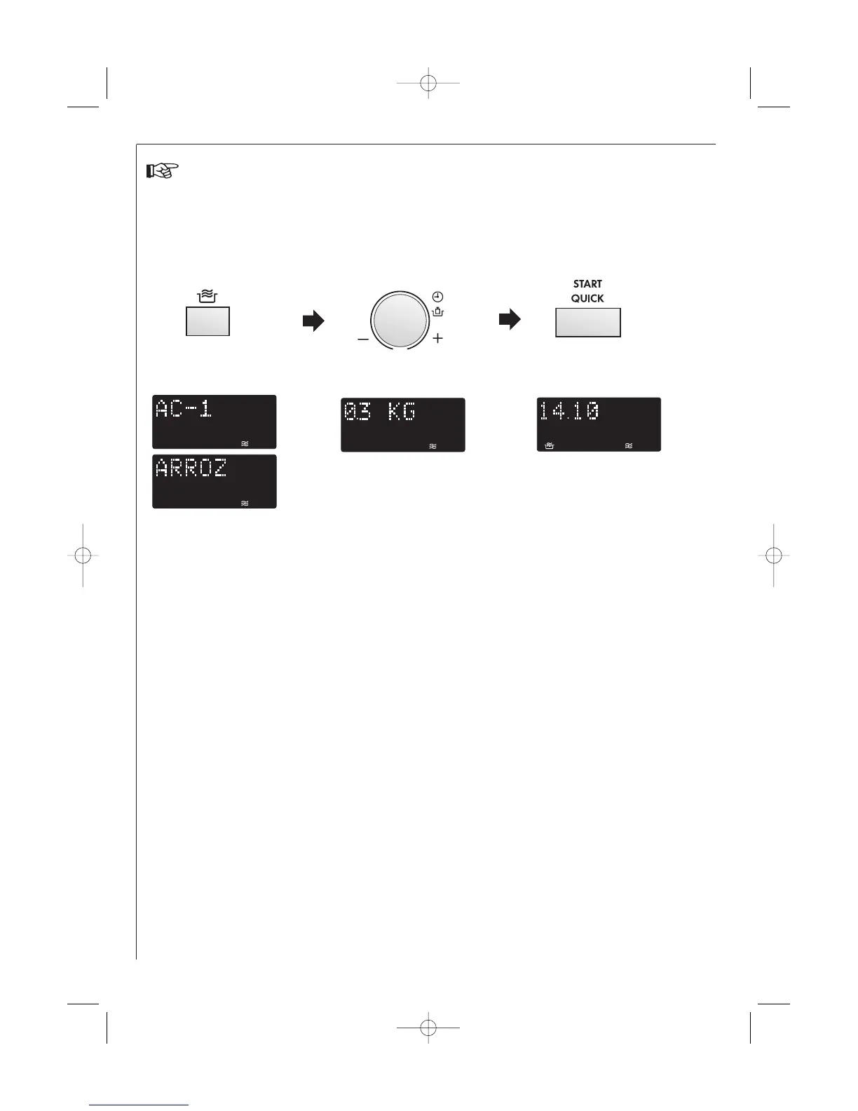 Ejemplo: Si desea cocinar Arroz que pesan 300 g con COCCIÓN AUTOMÁTICA (AC-1).