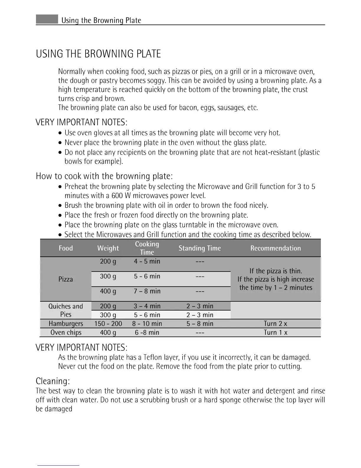 AEG MCD 3881 E-m - Using the Browning Plate; How to Cook with the Browning Plate; Cleaning