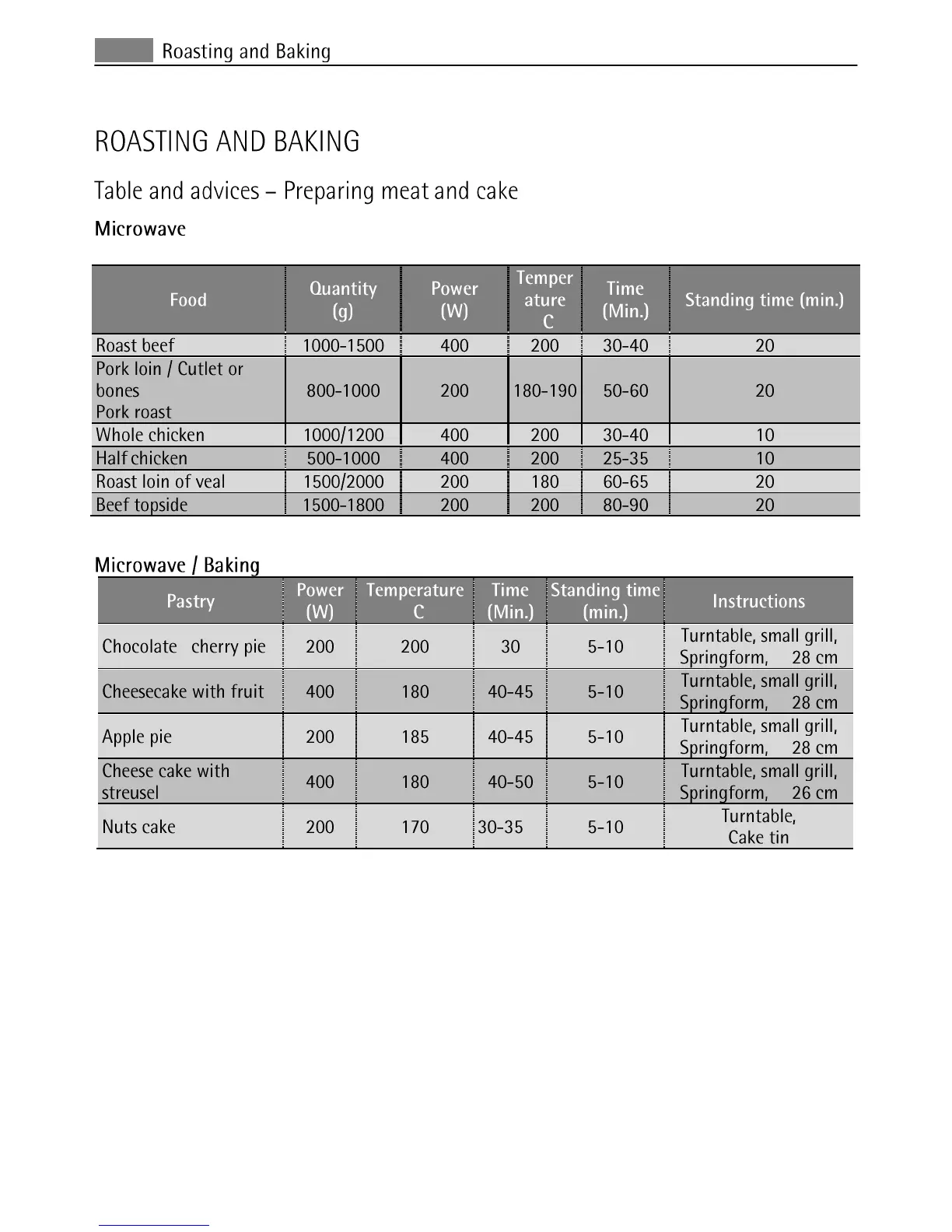 AEG MCD 3881 E-m - Roasting and Baking; Preparing Meat and Cake