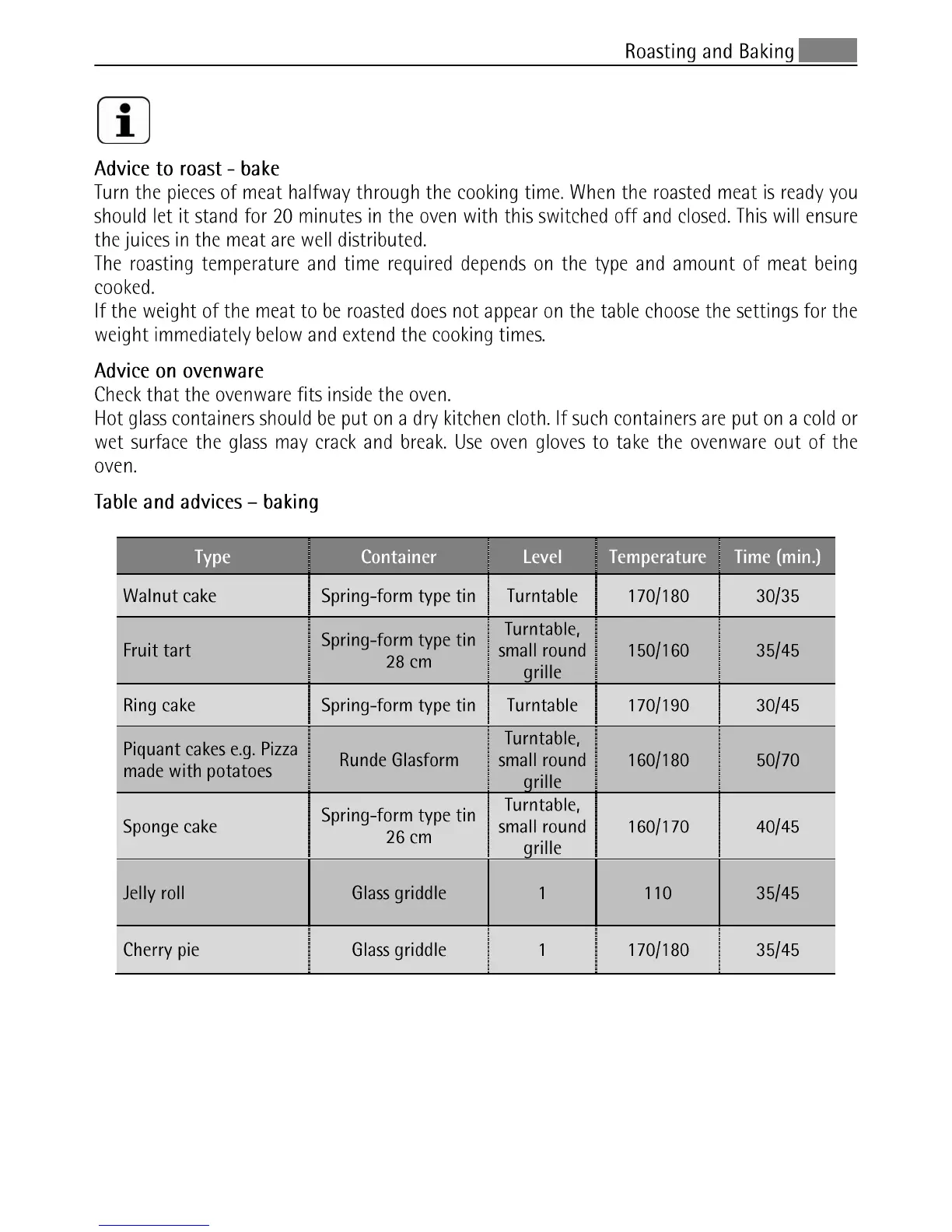 AEG MCD 3881 E-m - Advice to Roast - Bake; Advice on Ovenware