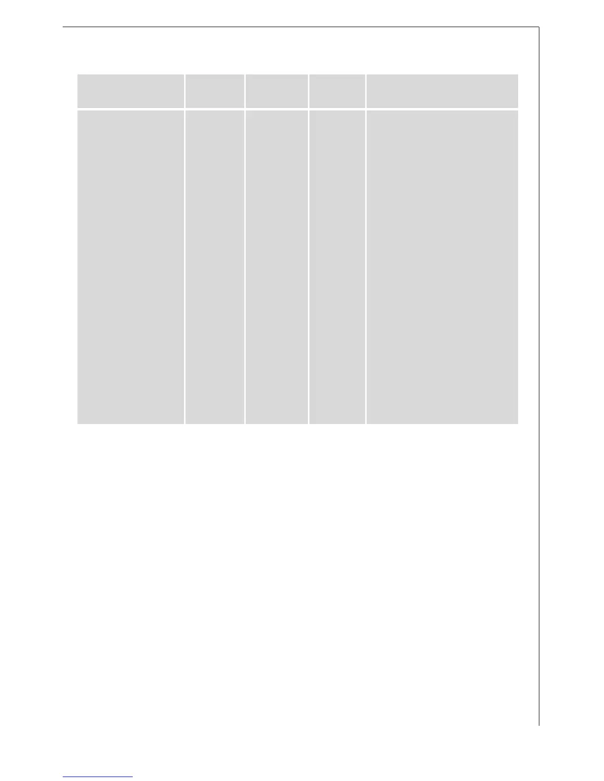 Unless otherwise stated, the settings given in the table are for use in
