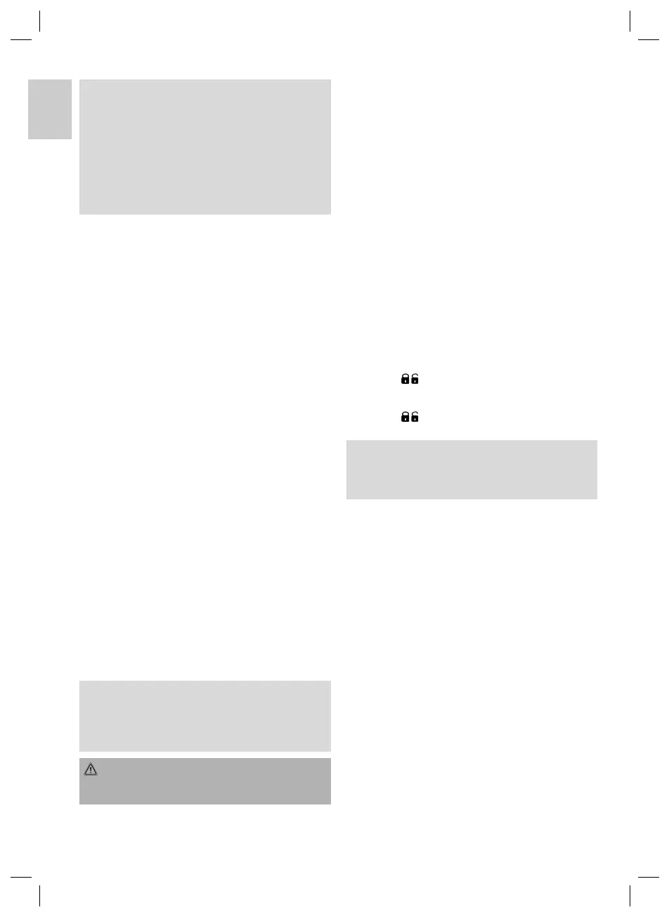 ON/OFF ( / ) Schalter (6) nach links. Das Schloss Symbol