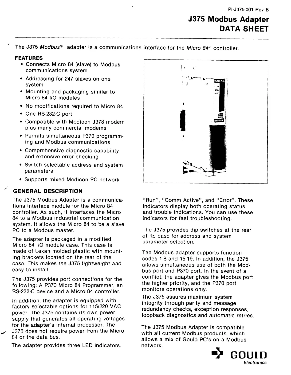 The J375 Modbus Adapter is a communica-