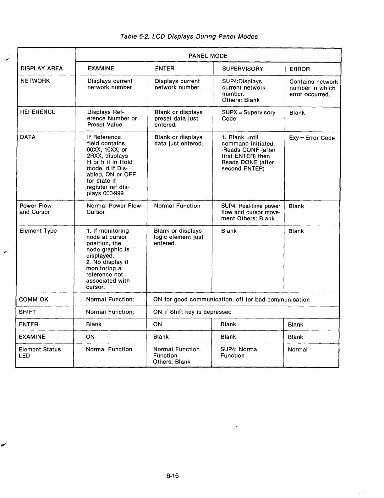 Table 6-2. LCD Displays During Panel Modes