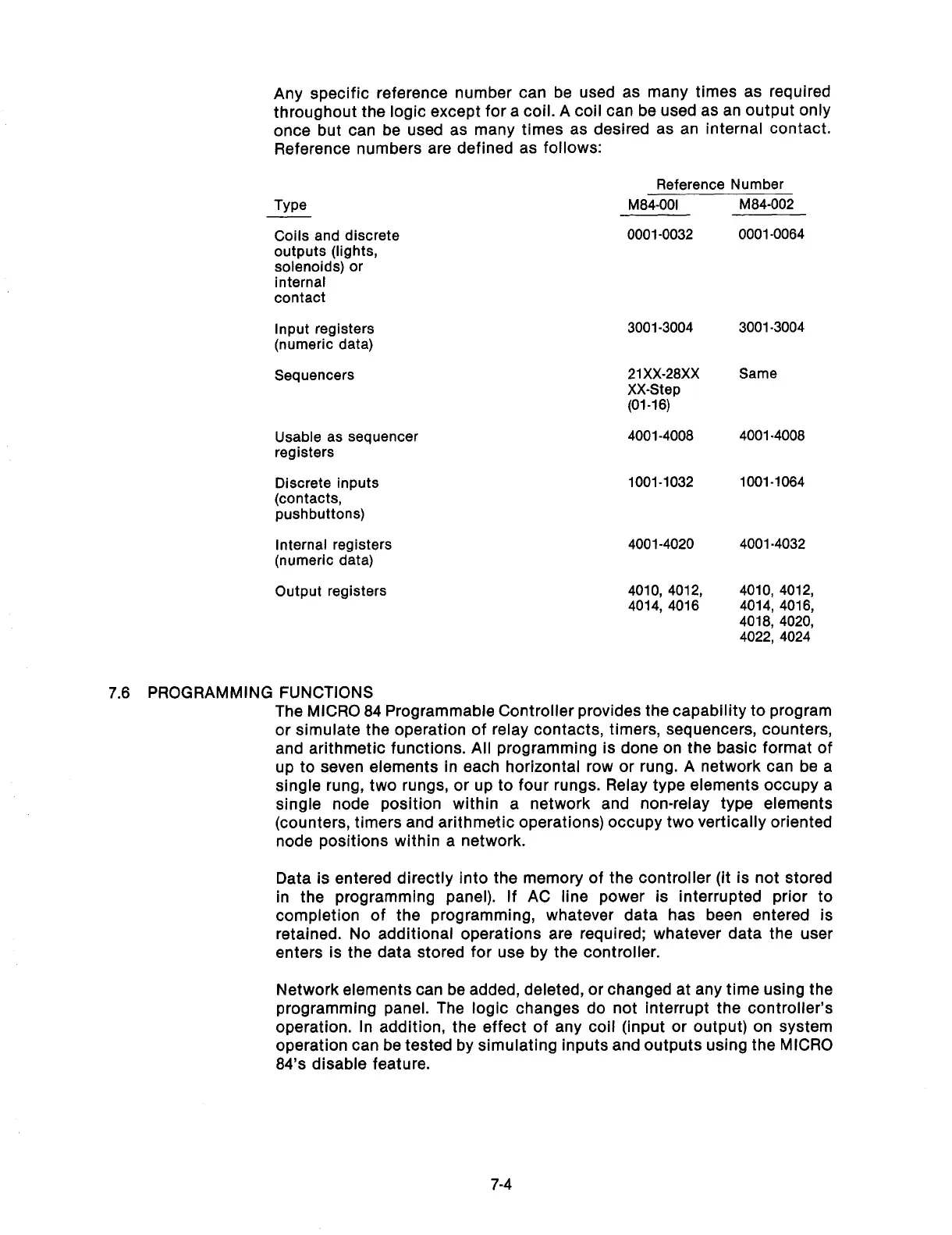 The MICRO 84 Programmable Controller provides the capability to program