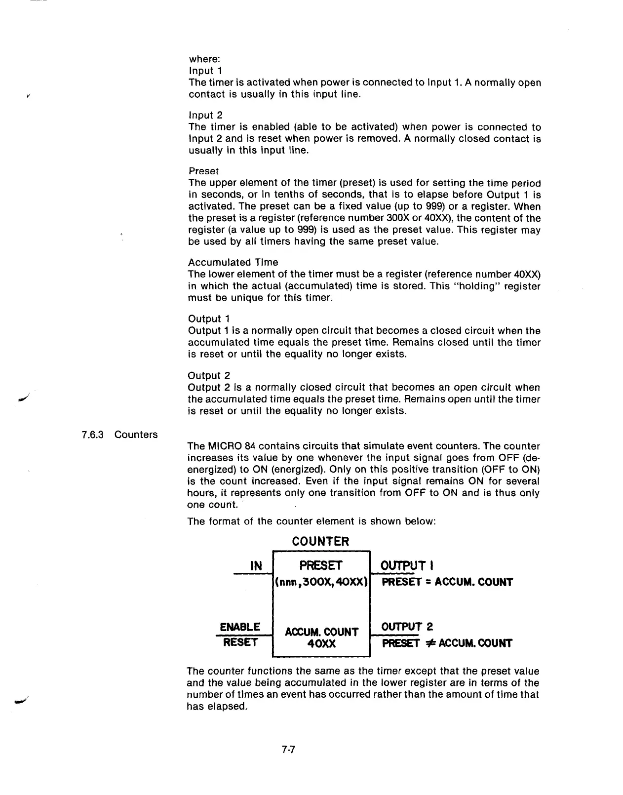 The MICRO 84 contains circuits that simulate event counters. The counter